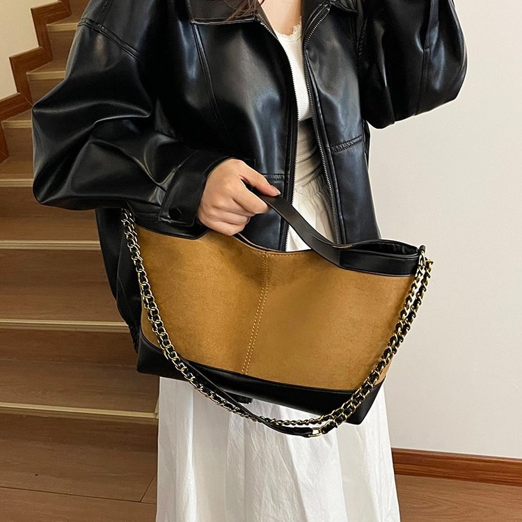 Four fashionable shoulder bags fully showcase their unique charm. From left to right, there are light brown, dark brown, burgundy, and black, with rich colors and versatile styles. The bag shapes are simple and smooth, just like elegant curved lines, outlining a fashionable contour. The shoulder straps are exquisite, paired with metal chain decorations, adding aesthetic details and texture. The materials are soft and the leather is fine, demonstrating quality. Whether paired with casual or formal attire, they can easily enhance the overall styling sense. choice for fashionistas, adding a touch of brightness and individuality to your outfits.